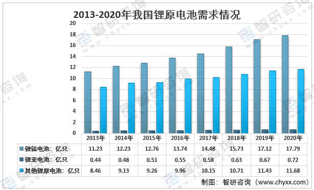 2013-2020年我國鋰亞鋰錳電池需求情況