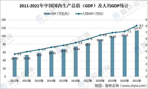 2011-2021年中國國內生產總值及人均GDP統計