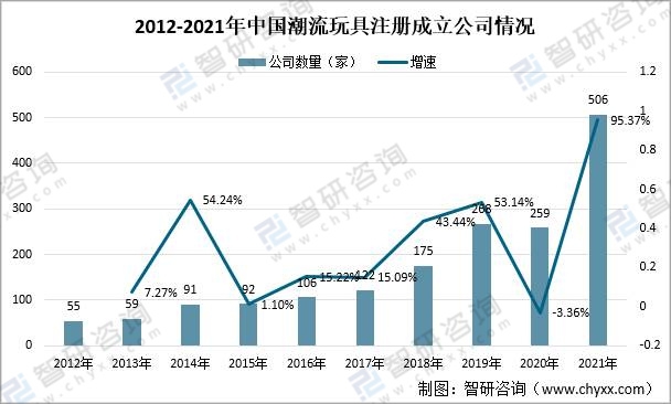 2012-2021年中國潮流玩具注冊成立公司情況
