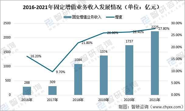 2016-2021年固定增值業(yè)務(wù)收入發(fā)展情況(單位:億元)