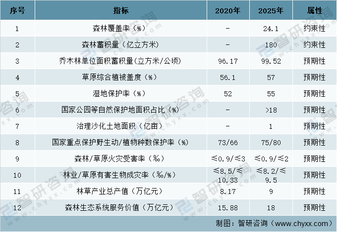 “十四五”時期林草保護發展主要指標
