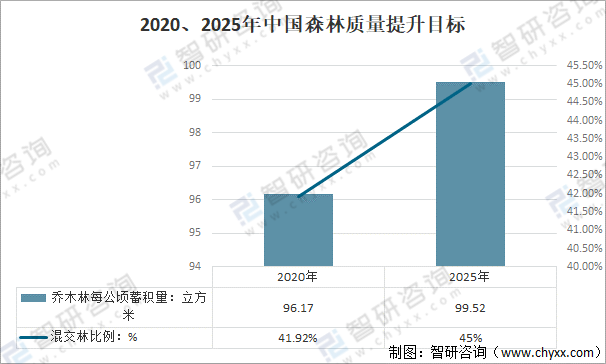 2020、2025年中國森林質量提升目標