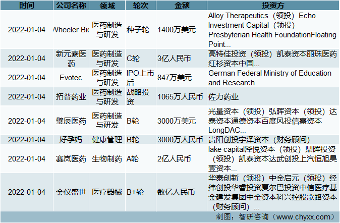 2022年1月4日醫(yī)藥保健行業(yè)投融資動態(tài)