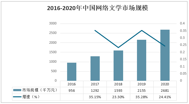 圖表:2016-2020年中國網絡文學行業規模分析