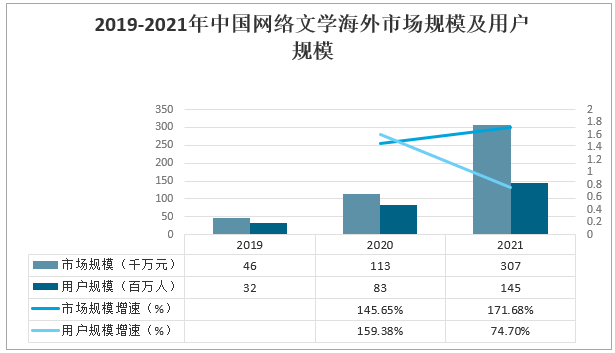 2019-2021年中國網絡文學海外市場規模及用戶規模