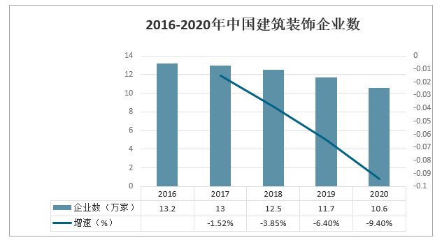 2016-2020年中國建筑裝飾企業數