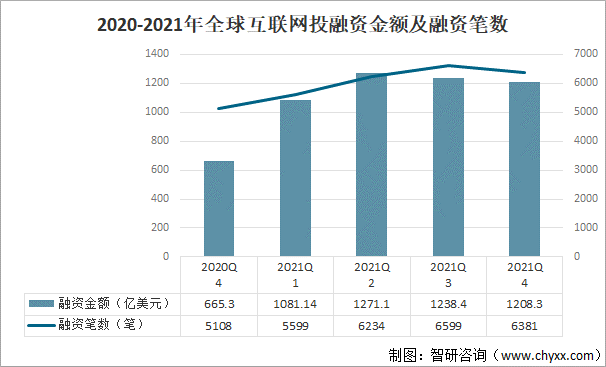 互聯(lián)網(wǎng)始于1969年美國的阿帕網(wǎng)。通常internet泛指互聯(lián)網(wǎng),而Internet則特指因特網(wǎng)。這種將計(jì)算機(jī)網(wǎng)絡(luò)互相聯(lián)接在一起的方法可稱作“網(wǎng)絡(luò)互聯(lián)”,在這基礎(chǔ)上發(fā)展出覆蓋全世界的全球性互聯(lián)網(wǎng)絡(luò)稱互聯(lián)網(wǎng),即是互相連接一起的網(wǎng)絡(luò)結(jié)構(gòu)。互聯(lián)網(wǎng)并不等同萬維網(wǎng),萬維網(wǎng)只是一建基于超文本相互鏈接而成的全球性系統(tǒng),且是互聯(lián)網(wǎng)所能提供的服務(wù)其中之一。國際環(huán)境更趨復(fù)雜嚴(yán)峻,世界經(jīng)濟(jì)復(fù)蘇放緩,通脹壓力上升與疫情蔓延交織。2021年四季度,全球互聯(lián)網(wǎng)投融資整體保持平穩(wěn),案例數(shù)6381筆,環(huán)比減少3.3%,同比上漲24.9%;披露金額1208.3億美元,環(huán)比減少2.4%,同比上漲81.6%。2020-2021年全球互聯(lián)網(wǎng)投融資金額及融資筆數(shù)
