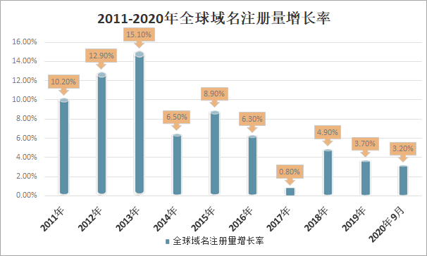 2011-2020年全球域名注冊(cè)量增長(zhǎng)率
