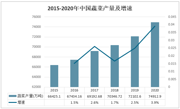 2015-2020年中國蔬菜產量及增速