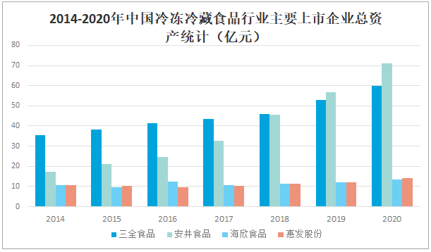 2014-2020年中國冷凍冷藏食品行業主要上市企業總資產統計(億元)