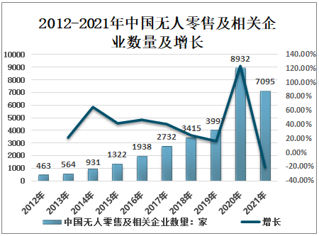 當下,將人工智能(AI)應用在零售業中掀起了熱潮。2012年以來,中國人零售及相關企業數量呈增長態勢,至2020年中國中國無人零售及相關企業數量8932家,同比增長123.47%,增幅為2012年以來最高。