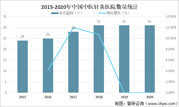 中醫(yī)針灸是古人智慧的結(jié)晶,在中華民族五千年文化傳承發(fā)展中占有重要地位,其包含著豐富的理論內(nèi)涵,不僅局限于物質(zhì)層面,更是精湛的保健和治病相結(jié)合的實(shí)踐技術(shù);獨(dú)特的中醫(yī)治病與預(yù)防相結(jié)合的思維模式;豐富的人與自然界、宇宙的精神內(nèi)涵三者結(jié)合的存在。是一種具有代表性的文化表現(xiàn)形式,凝聚著中華民族的智慧和創(chuàng)造力,已成為我國(guó)在世界范圍內(nèi)的特征性文化標(biāo)志之一。中醫(yī)針灸作為我國(guó)中醫(yī)文化中的瑰寶之一,在醫(yī)學(xué)實(shí)踐中扮演著越來(lái)越重要的角色,不僅在疾病的治療上起著關(guān)鍵作用,也在疾病的預(yù)防和保健方面發(fā)揮著重要作用,近年來(lái)中國(guó)中醫(yī)針灸醫(yī)院數(shù)量逐年增加,2018年中國(guó)中醫(yī)針灸醫(yī)院數(shù)量達(dá)31個(gè),較2017年增加了3個(gè),同比增長(zhǎng)10.71%,自2019年起中國(guó)中醫(yī)針灸醫(yī)院數(shù)量趨于平穩(wěn)。