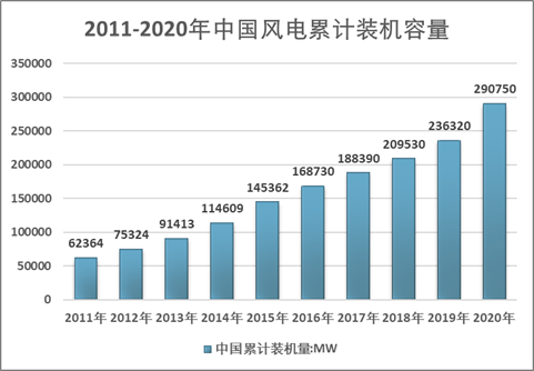 2011-2020年中國風(fēng)電累計(jì)裝機(jī)容量