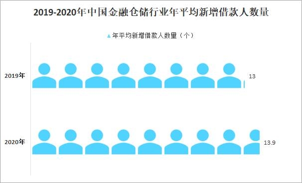 2019-2020年中國金融倉儲行業年平均新增借款人數量