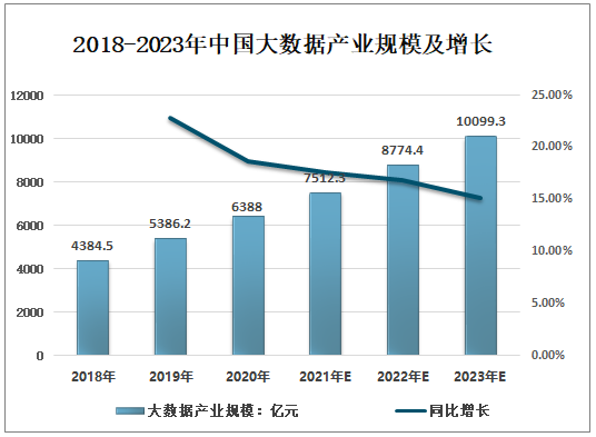 2018-2023年中國大數據產業規模及增長