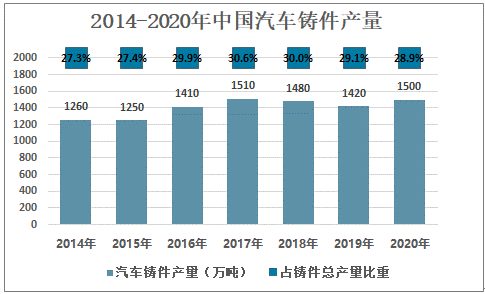 汽車行業是鑄件最大的應用領域。受國Ⅲ汽車淘汰、治超加嚴以及基建投資等因素的拉動,商用車2020年全年產銷呈現大幅增長,成為2020年車市恢復的重要動力;受商用車大幅增長的拉動,2020年汽車鑄件產量有所增長,產量為1500萬噸,占鑄件總產量的28.9%。