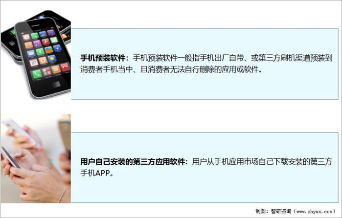 APP(應用程序,Application的縮寫)一般指手機軟件,主要指安裝在智能手機上的軟件,完善原始系統的不足與個性化。使手機完善其功能,為用戶提供更豐富的使用體驗的主要手段。根據手機APP安裝來源不同,又可分為手機預裝軟件和用戶自己安裝的第三方應用軟件。手機預裝軟件一般指手機出廠自帶、或第三方刷機渠道預裝到消費者手機當中、且消費者無法自行刪除的應用或軟件。除了手機預裝軟件之外,還有用戶從手機應用市場自己下載安裝的第三方手機APP。