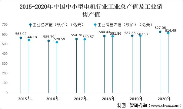 2015-2020年中國中小型電機行業(yè)工業(yè)總產(chǎn)值及工業(yè)銷售產(chǎn)值