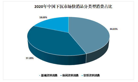 最容易讓人理解快消品包括包裝的食品、個(gè)人衛(wèi)生用品、煙草及酒類和飲料。之所以被稱為快消,是因?yàn)樗鼈兪紫仁侨粘S闷贰?p />下層市場(chǎng)快消品分為三類,基礎(chǔ)資料消費(fèi)、休閑資料消費(fèi)和享受資料消費(fèi)。2020年下沉市場(chǎng)快消品分類型消費(fèi)占比中,基礎(chǔ)資料消費(fèi)占比44.03%,休閑資料消費(fèi)占比為37.28%,享受資料消費(fèi)占比為18.69%。2020年中國(guó)下沉市場(chǎng)快消品分類型消費(fèi)占比