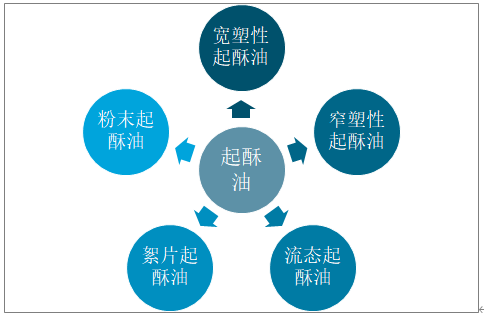 起酥油最早源自于美國,是將棉籽油和牛油混合作為豬油的替代品,這種混合產物具有很好的起酥性,因此被稱為起酥油。原始混合型的起酥油在經過硬化技術之后,轉變為部分氫化型起酥油,具備良好的融合性和穩定性,可以滿足烘焙食品制作的要求。但是,由于部分氫化油中存在對身體有害的反式脂肪酸成份,油脂廠商開始通過引進最新的技術,將動物油脂、植物油等各類不同油脂,按一定比例混合,經脂交換油脂改性技術,生產制造最新型的油脂原料,并加入其他一些輔助原料,制成不含反式脂肪酸的烘焙起酥油。根據市場上起酥油產品的應用特性,可將起酥油分為寬塑性起酥油、窄塑性起酥油、流態起酥油、絮片起酥油和粉末起酥油5類。起酥油分類