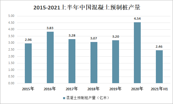 2015-2021上半年中國(guó)混凝土預(yù)制樁產(chǎn)量