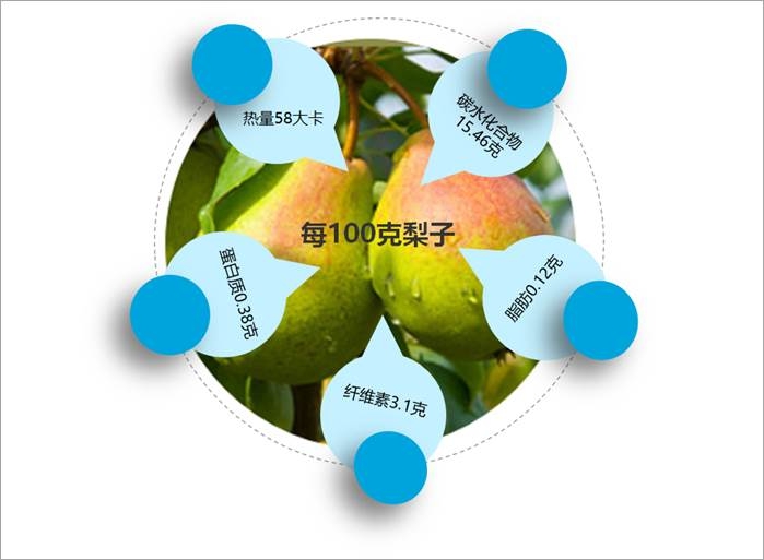 梨子含有多種維生素及鉀、鈣元素,有降壓、清熱、鎮靜和利尿作用,對高血壓、心臟病伴有的頭暈目眩、心悸、耳鳴癥狀有一定的治療效果。梨子生吃,能解除因上呼吸道感染所產生的咽喉干燥癢痛、干咳及煩渴、潮熱等陰虛之癥。因此,教師、播音員及歌唱演員經常吃梨,用來保護嗓子,預防喉癌、肺癌和鼻咽癌,吃梨時最好還是細嚼慢咽,才能更好地讓腸胃吸收。