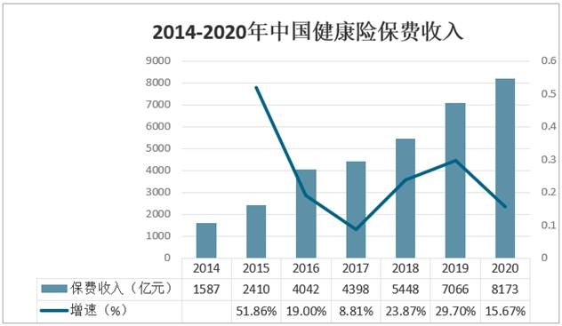 2014-2020年中國(guó)健康險(xiǎn)保費(fèi)收入