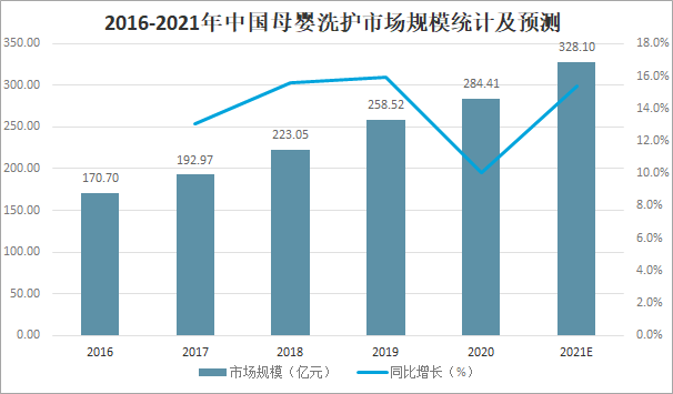 2016-2021年中國母嬰洗護市場規模統計及預測