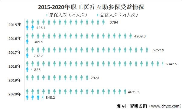 我國現行的職工醫療互助保險制度始于建國初期,廣大職工自愿參與,通過少量成本投入實現互幫互助、降低風險,是職工抵御重特大疾病的有效防線。2020年中國共有4625.3萬人次參保職工醫療互助,較2019年增加了1702.3萬人次,受益人數為848.2萬人次。