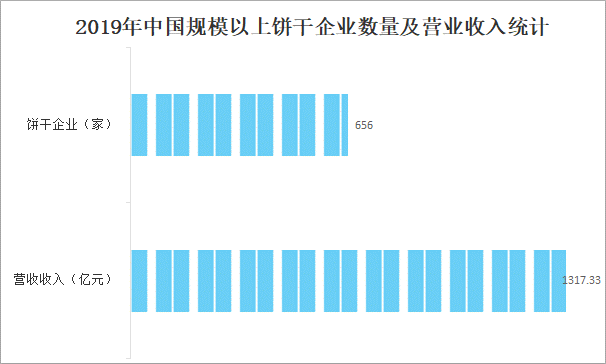 在各種休閑食品中,一半以上的家庭曾經(jīng)購買國餅干類食品,受到各類家庭的喜愛,根據(jù)中國焙烤食品糖制品工業(yè)協(xié)會數(shù)據(jù),2019年營收超2000萬元的規(guī)上餅干企業(yè)已達656家,合計營收達1317.33億元。