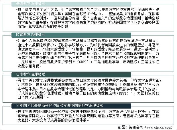 從全球數字治理格局來看,美國和歐盟各自主導了全球最主要的兩大數字治理體系,兩大體系治理重點各有不同,均致力于將各自的治理方式推廣成全球規則和標準。日本、中國、俄羅斯、印度、加拿大、澳大利亞、韓國等主要國家在數字治理方面也逐漸形成了自己的特色,但在全球數字治理主導權、話語權方面尚不能與美歐相抗衡,在國際數字規則制定中扮演著參與者和跟隨者的角色。全球主要國家數字治理模式