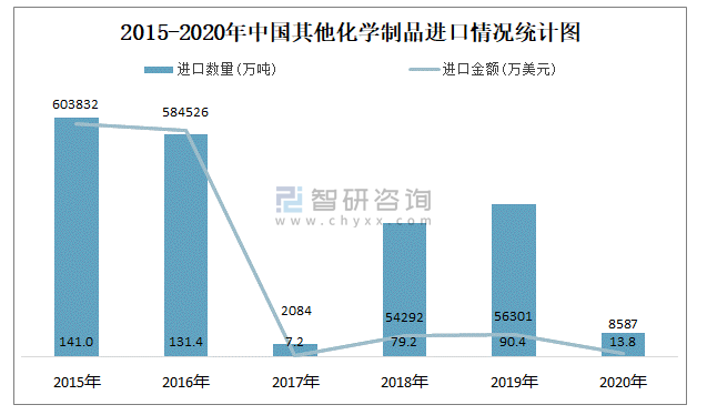 2015-2020年中國其他化學制品進口情況統(tǒng)計圖