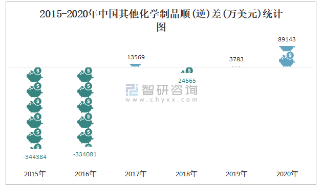 2015-2020年中國其他化學制品順(逆)差(萬美元)統(tǒng)計圖
