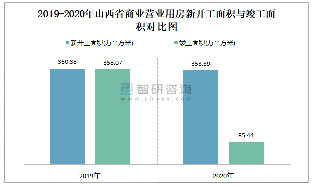 2019-2020年山西省商業(yè)營業(yè)用房新開工面積與竣工面積對比圖