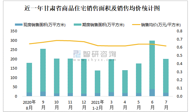 2021年7月甘肅省銷售商品住宅200.54萬平方米 銷售均價(jià)約為0.62萬元/平方米
