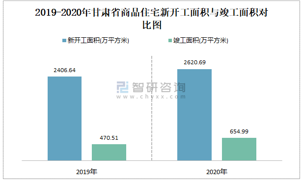 2019-2020年甘肅省商品住宅新開工面積與竣工面積對比圖