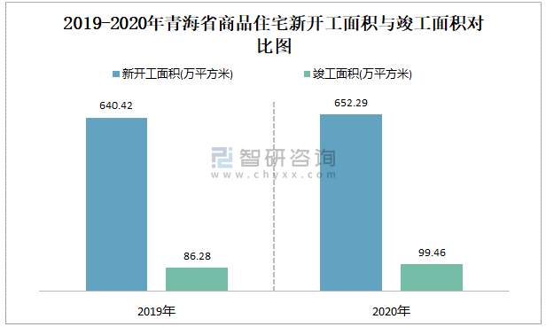 2019-2020年青海省商品住宅新開工面積與竣工面積對比圖