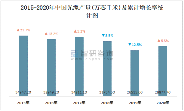 2015-2020年中國(guó)光纜產(chǎn)量及增長(zhǎng)情況統(tǒng)計(jì)圖