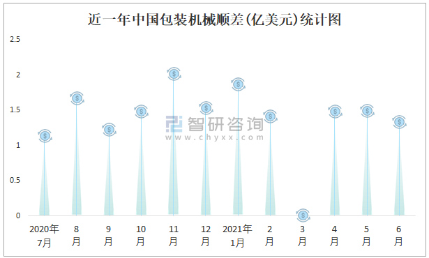 根據中國海關數據顯示:近一年中國包裝機械出口金額總體大于出口金額,進出口貿易順逆差以順差為主,順差規模在2021年3月縮減至最小,此后有所擴大;