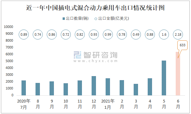 近一年中國插電式混合動(dòng)力乘用車出口情況統(tǒng)計(jì)圖