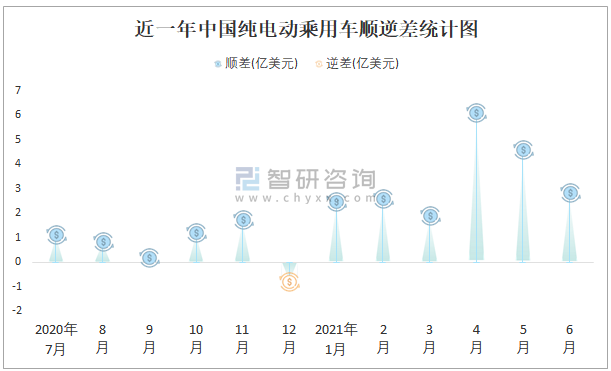 近一年中國純電動乘用車順逆差統(tǒng)計圖