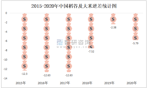 2015-2020年中國(guó)稻谷及大米逆差統(tǒng)計(jì)圖