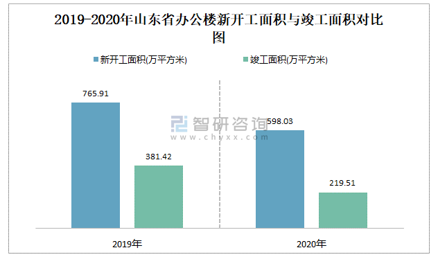 2019-2020年山東省辦公樓新開工面積與竣工面積對(duì)比圖