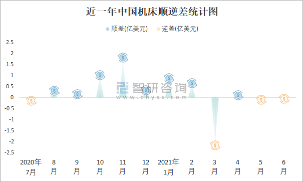 近一年中國機床順逆差統計圖