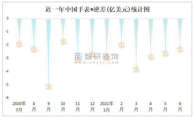 根據中國海關數據顯示:近一年中國手表進口金額總體大于出口金額,進出口貿易全部為逆差,逆差規模自3月起逐月縮減。
