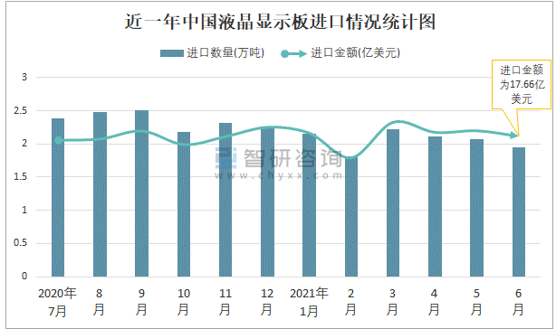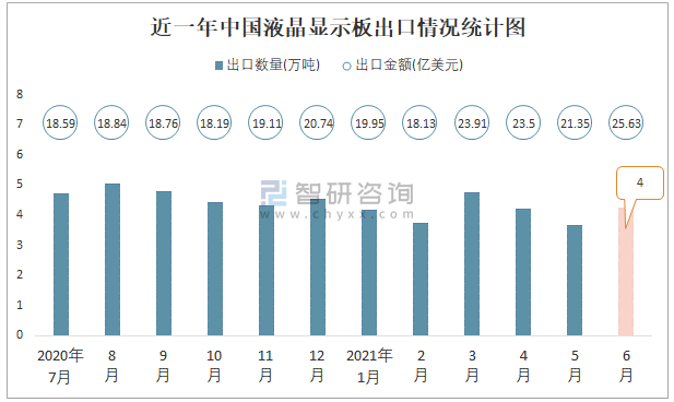根據(jù)中國海關(guān)數(shù)據(jù)顯示:2021年6月中國液晶顯示板進(jìn)口數(shù)量為1.95萬噸,同比下降16.4%,進(jìn)口金額為17.66億美元,同比增長10.5%,2021年6月中國液晶顯示板出口數(shù)量為4.25萬噸,同比增長11.8%,出口金額為25.63億美元,同比增長64%;2021年1-6月中國液晶顯示板進(jìn)口數(shù)量為12.31萬噸,進(jìn)口金額為106.55億美元,出口數(shù)量為24.85萬噸,出口金額為132.47億美元。