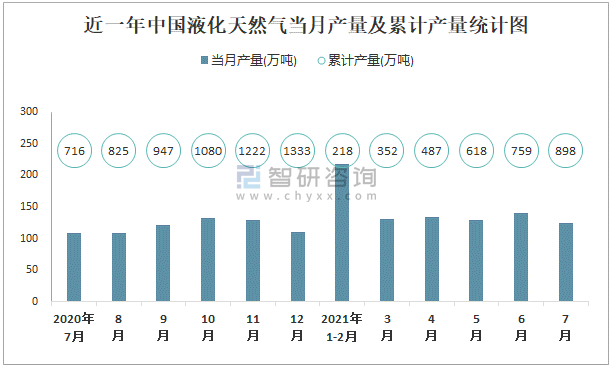 根據國家統計局數據顯示:2021年7月中國液化天然氣產量為125萬噸,同比增長5.8%;2021年1-7月中國液化天然氣累計產量為898.1萬噸,累計增長19.5%;2015-2020年中國液化天然氣產量逐年遞增,2020年達到最高。