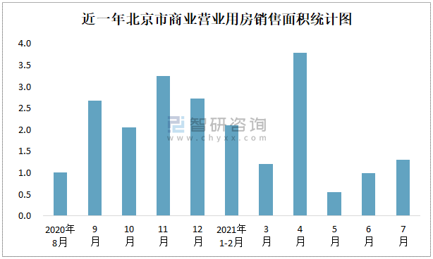 近一年北京市商業(yè)營業(yè)用房銷售面積統(tǒng)計圖