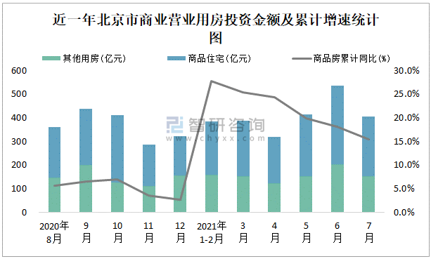 根據(jù)國家統(tǒng)計局?jǐn)?shù)據(jù)統(tǒng)計可知:2021年7月北京市房地產(chǎn)開發(fā)投資商品房投資金額為404.25億元,其中包括辦公樓、商業(yè)營業(yè)用房等其他用房153.13億元(注:辦公樓、商業(yè)營業(yè)用房未分開統(tǒng)計);2021年1-7月北京市房地產(chǎn)開發(fā)投資包括商業(yè)營業(yè)用房在內(nèi)的其他用房累計金額為946.08億元。