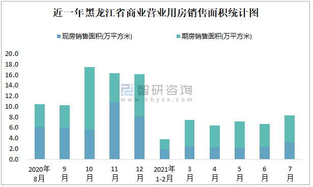 根據國家統計局數據可知:2021年7月黑龍江省商業營業用房銷售面積為8.29萬平方米(其中銷售現房3.2萬平方米,期房5.09萬平方米);2021年1-7月黑龍江省商業營業用房累計銷售面積為39.82萬平方米;近一年黑龍江省商業營業用房期房銷售面積遠高于現房銷售面積。